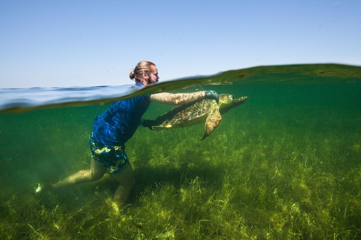 - One of the team members will dive into the shallow water, capture the turtle and return it to the dinghy, where it will be measured and tagged, relevant data will be recorded, and it will quickly be released back into the sea.